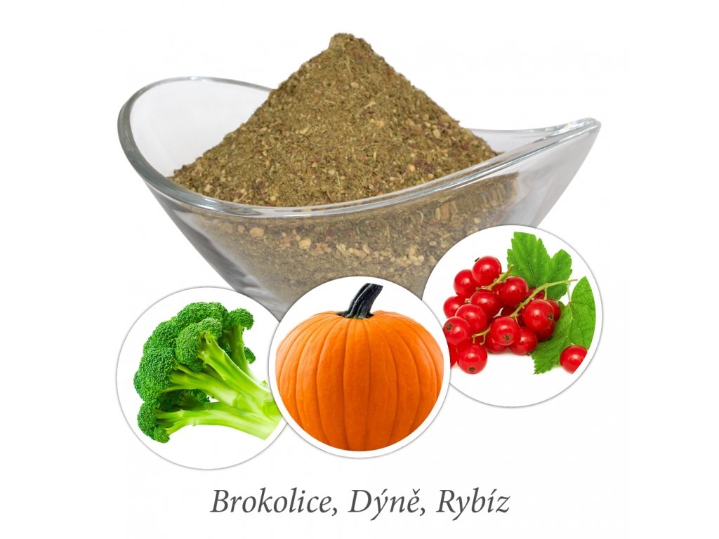 Jemný prášek, který se dobře spojí s masem. Aternativa pro psy, kteří odmítají čerstvou zeleninu.