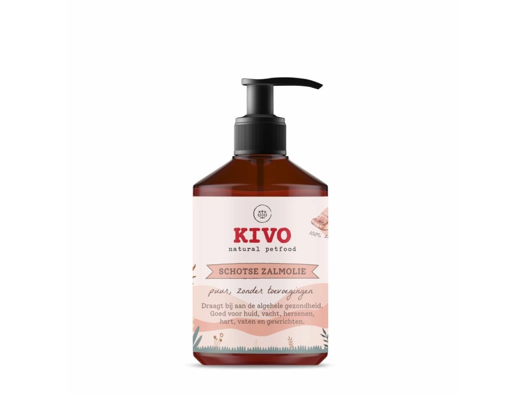 Kivo Lososový olej je extrahován z čerstvého lososa plavajícího ve studených vodách Skotska a Norska. Lososový olej je bohatý na Omega-3 mastné kyseliny EPA a DHA, které vyživují kůži, snižují záněty a svědění kůže, lámání a vypadávání srsti, posilují kardiovaskulární a imunitní systém, mají protizánětlivé účinky.