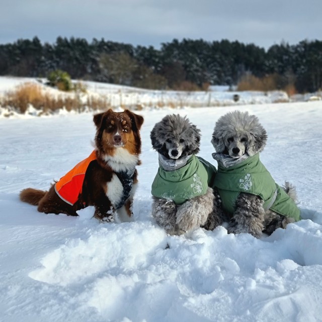 Prvního psa, trpasličího aprikot pudla, si pořídila babička, když mi bylo 10 let. Trávila jsem s Ronym u babičky svůj volný čas, zajímala jsem se o výcvik, péči o pudlí srst i o krmení. Zanedlouho jsme si pořídili pejska i domů – trpasličího stříbrného pudla Žikiho z Podzáruby. Pudlové nás nadchli nejen svým vzhledem, ale i svou povahou a dalším pejskem, kterého jsme si v roce 1993 přivezli domů, byl střední stříbrný pudl Silver Flip Černá astra. Flipík se mnou vyletěl z rodného hnízda k příteli a dožil se téměř 16 let. Život bez psa byl smutný a na podzim 2009 jsme si jeli pro dalšího středního stříbrného pudla. Cleo - Cleo D‘Argent Surprise de Moravie byl od malička neposedný čertík. Seznámili jsme se s pozitivní motivací, zkusili jsme pár výstav, neoficiálních závodů agility i tréninků coursingu. Přátelskému tříletému Kleofáškovi jsme pořídili parťáka – středního stříbrného pudla Bon Bougre Coeur de Moravie. Boogie měl od narození neskutečný drive a vyrovnanou povahu. Agility jsem s Bugískem po pár trénincích raději vzdala, protože s jeho rychlostí hrozilo zranění a já jsem na to neměla nervy :-) Boogie byl velice úspěšným výstavním psem a získal skvělá ocenění v několika státech. V březnu 2023 se naše smečka neplánovaně rozrostla o štěňátko, fenku australského ovčáka Zulu Cofi Capito. Tento externí vrh se narodil u mé dlouholeté kamarádky Marie Losové v Klučově u Třebíče (nyní chovatelská stanice Ell Titoco). Často jsem jezdila se štěňátky pomáhat a čokoládové medvídě Zulu si mě vybralo. Opakovaně jsem odmítala myšlenku i rady ostatních, ať si Zulu vezmu, ale nakonec jsem svůj názor změnila a bylo to nejlepší rozhodnutí, jaké jsem udělala. Zulu nám vnesla do života úžasnou energii, radost a změnu a dědouškové Cleo a Boogie díky ní omládli. Bohužel, Kleofášek nás opustil v únoru 2025 a Bugatka ho následoval za Duhový most o dva měsíce později :-(