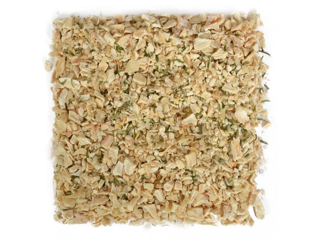 Mix zeleniny šetrně sušené tlakem v suché horké páře se zachovanými živinami a vitamíny. Obsahuje výhradně přírodní suroviny nejvyšší kvality. Svou pestrostí a vyvážeností optimálně zaopatří a doplní denní krmnou dávku nejen při BARFu. Výhodou je především jednoduchost z hlediska přípravy, skladování a shánění zeleniny čerstvé.
