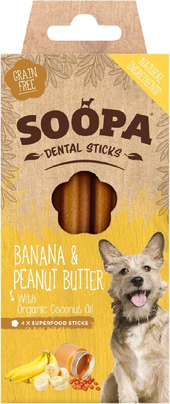 Dentální tyčinky Soopa ze 100% přírodních surovin pomáhají redukovat zubní plak, omezovat zápach z tlamy a snižovat riziko vzniku zubního kamene a onemocnění dásní.
