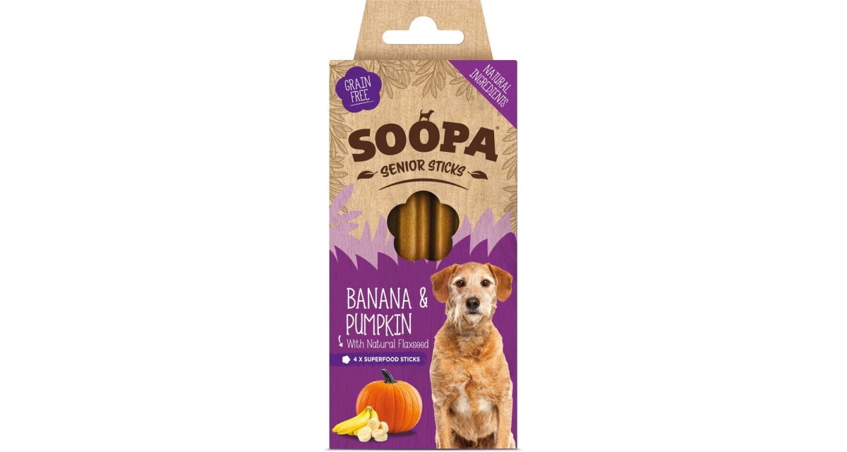 Soopa Senior jsou měkčí než ostatní pamlsky Soopa a navíc obsahují lněné semínko, které napomáhá správnému trávení a zvyšuje nutriční hodnotu pamlsku. To ocení zejména starší pejsci, kteří s přibývajícími léty potřebují více energie.