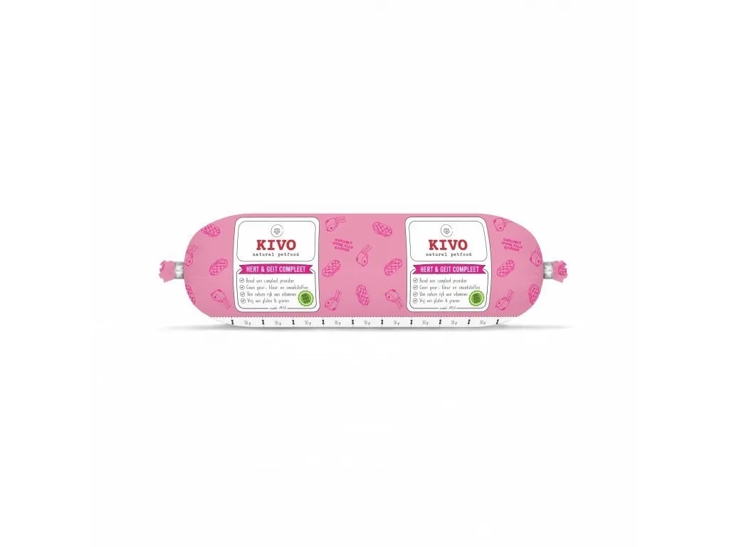 Čerstvě zmrazené kompletní krmivo obsahuje 80% jeleního masa a 20% kozího masa, vnitřnosti i kosti.